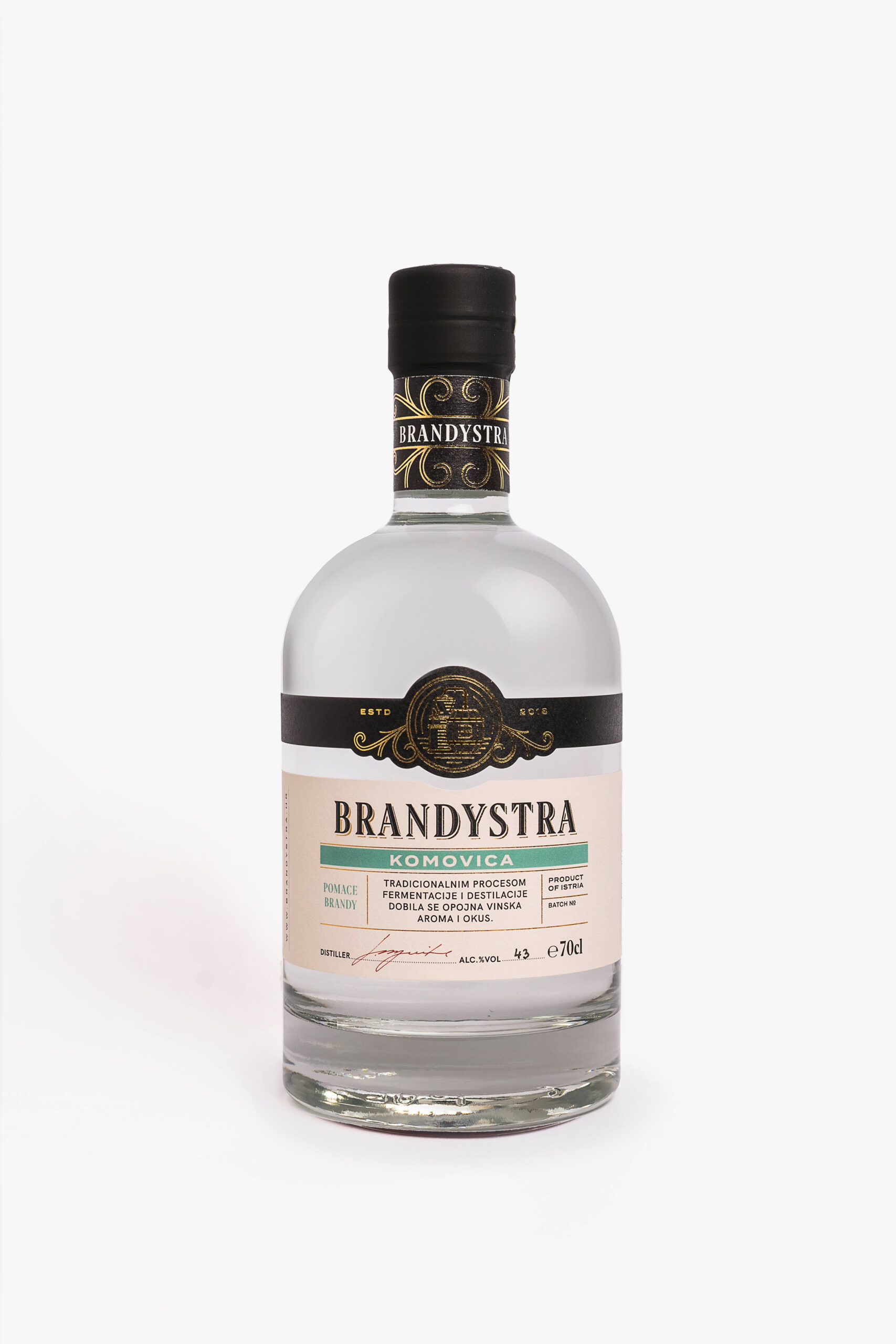 Tradicionalnim procesom fermentacije grožđanog koma te dvostrukom destilacijom istog u bakrenom kotlu, dobila se tradicionalna istarska komovica, opojne vinske arome i okusa. Služi kao baza za većinu naših likera. Iznimno čisti i bistri destilat s nježnim mirisom grožđa.